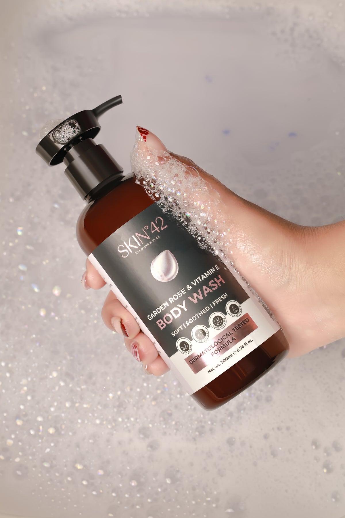 Squeeze body wash onto your palm.