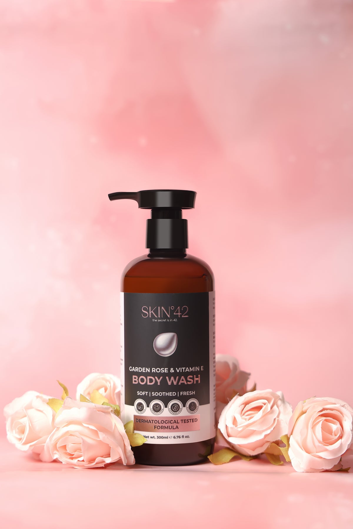 Fresh garden rose cleanse with antioxidant Vitamin E for healthy-looking skin